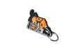 PVC key cover in the shape of a STIHL chainsaw in STIHL orange and grey, approx. 1 cm thick.